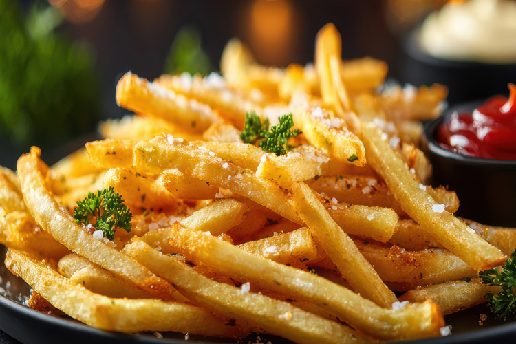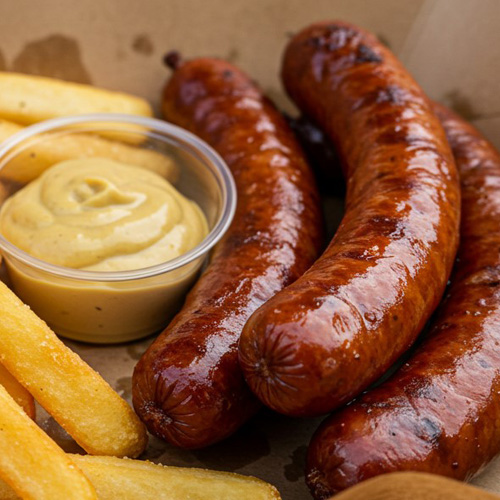 Golden French Fries, crunchy on the outside and fluffy inside, served with your choice of Bavarian sweet mustard, spicy mustard, curry ketchup, curry spice, or creamy mayonnaise. At Bavarian Sausage Brothers, every product is made to be authentic, hearty, and unforgettable.